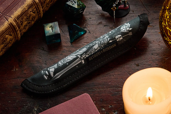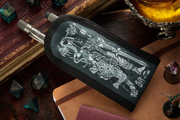 Now you can follow your quest in style with Fire & Dice 2e: Fighter, our 2024 Exclusive collaboration with Retro 51. Featuring classic icons from the tabletop RPG community, this metal etched pencil has it all. A dragon, weapons, coins, magic, arrows, and gold all come together in a mechanical pencil that will be sure to wow.